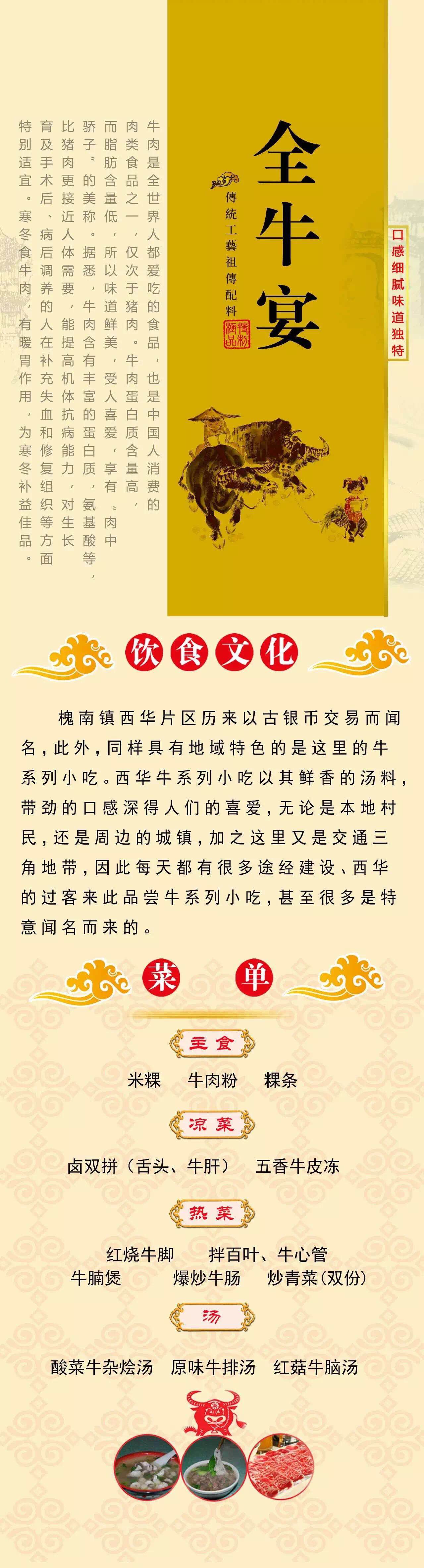 槐南的牛系列小吃极具地域特色,卤双拼(舌头、牛心、牛肝)、五香牛皮冻、红烧牛脚、牛腩煲、拌百叶、牛心管、爆炒牛肠、酸菜牛杂烩汤、原味牛排汤、红菇牛脑汤等佳肴,以其鲜香的食材,带劲的口感深得人们的喜爱,令人大饱口福、赞不绝口。