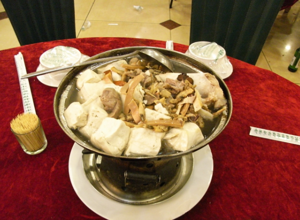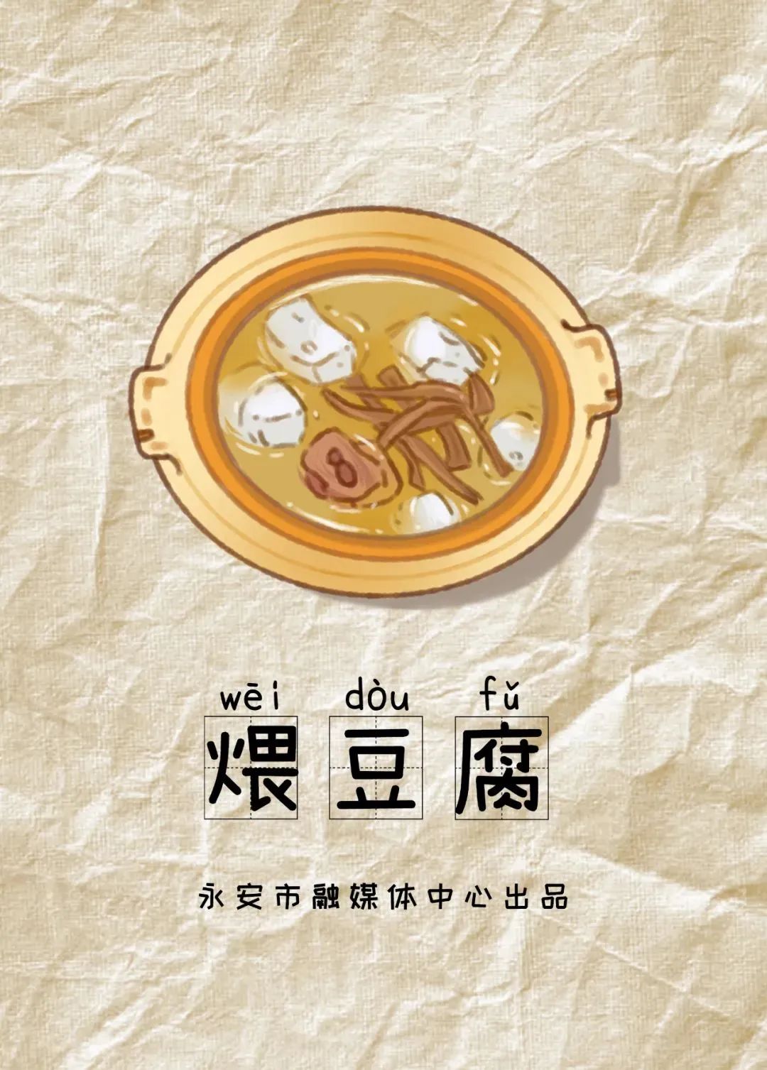 煨豆腐:又称之为“烫嘴豆腐”。其制法是将豆腐块置于大铁锅内,加目鱼、猪脚、排骨、清水等,以炭火久煨,将豆腐煮成蜂窝状,催之入味。