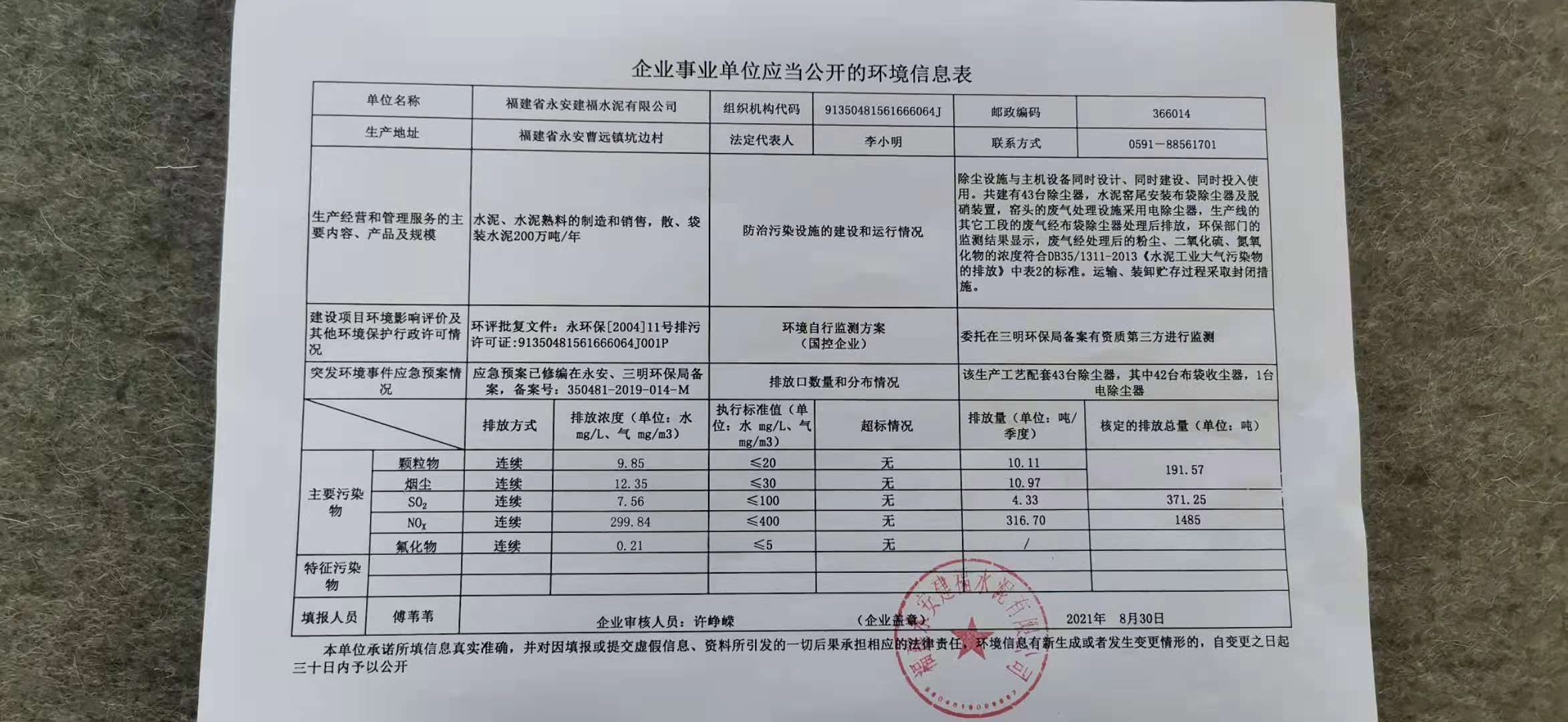 企业环境信息公开(2021年度福建省永安建福水泥有限公司)