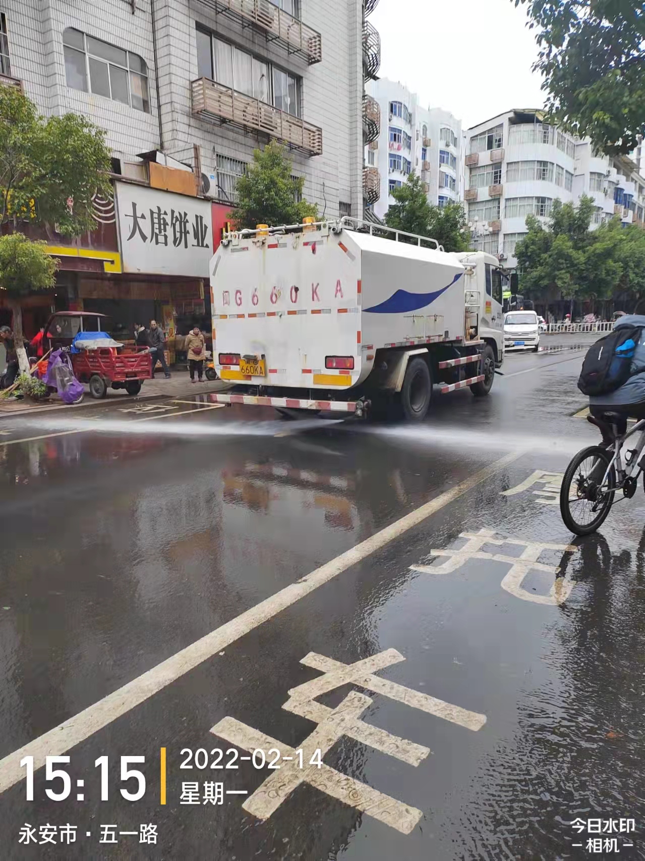 近日,市环卫所联合城管大队等单位对五一路开展洗扫工作,有效清理了流动摊贩遗留的菜叶、果皮等垃圾,为周边群众营造良好的生活环境。据悉,环卫所每日对城区31条主次干道进行洒水降尘,有效提升了城区空气环境质量。