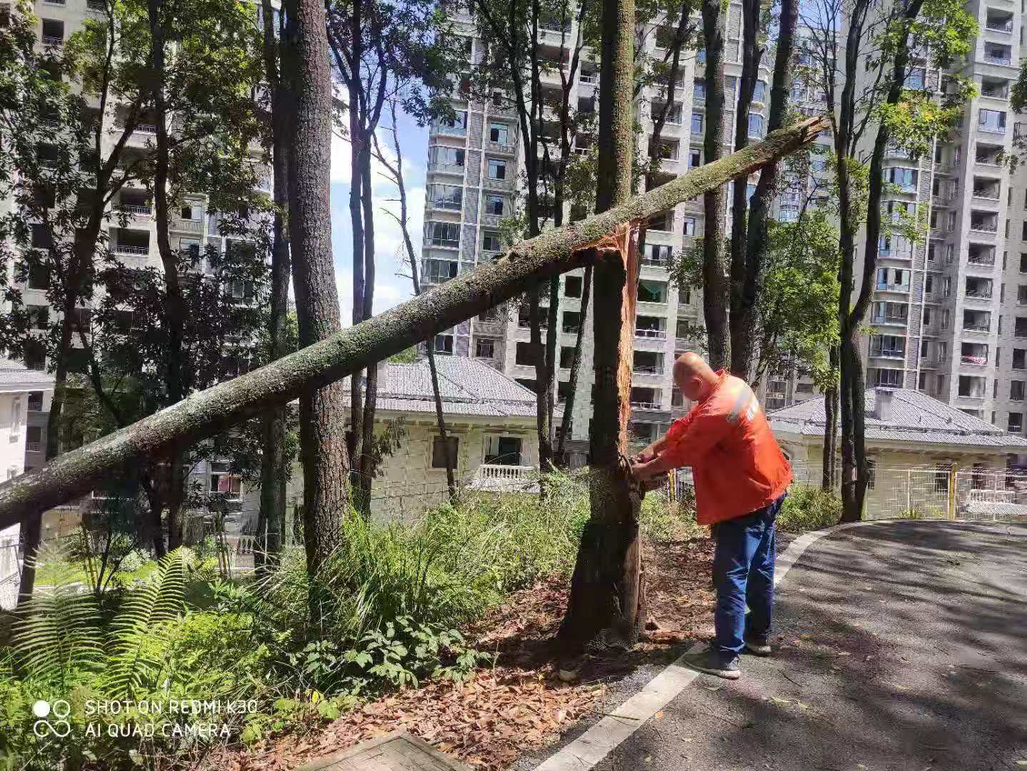7月24日,市政园林所巡查人员发现五洲三期慢线及将军山公园各有一棵树木开裂,存在倒伏风险,市政园林所发现情况后立即组织班组进行处置,及时消除了安全隐患。