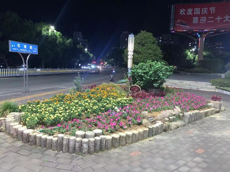 为庆贺国庆节,喜迎二十大,市政园林所全面启动节日气氛营造,在城区各公园以及城区主干道道路分车带、绿地等位置种植摆放矮牵牛、孔雀草、鸡冠花、紫花鼠尾草、夏堇、百日草等时令花卉,用花量约4.1万株。