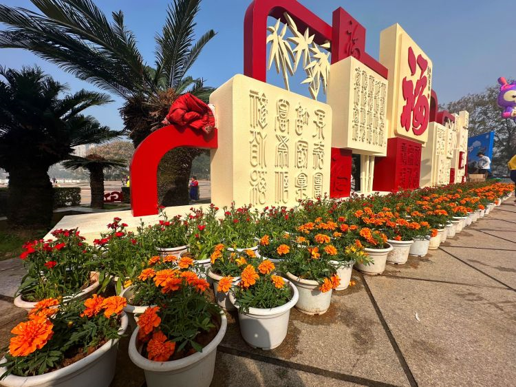 为了营造喜庆氛围,近日,市政园林所在龟山公园、南山公园、将军山公园等公园的主入口设置节日展装,为市民群众送上美好的新年祝福。在龟山公园、新华路-巴溪大道十字路口等重要位置种植大量的草花。三色堇、石竹、矮牵牛、金鱼草、孔雀草、玻璃翠等鲜艳的花朵被精心种植在城市各处,为城市增添了一抹色彩。