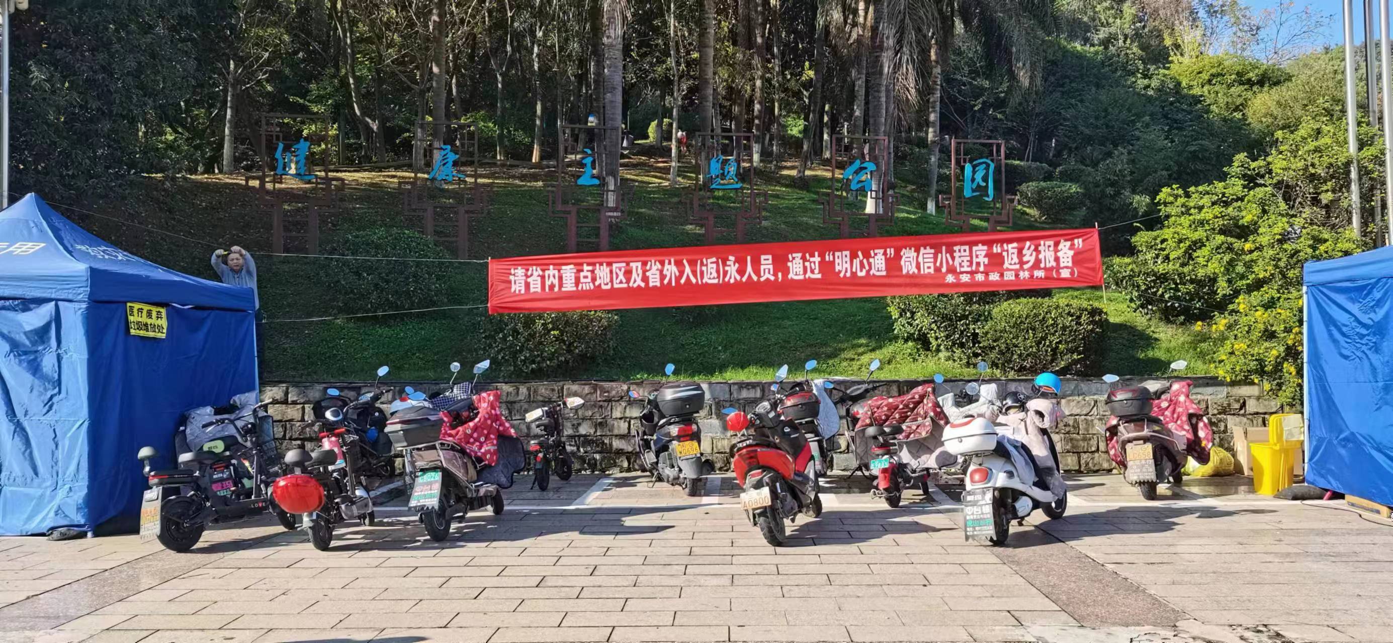 面对疫情防控的严峻形势,近日,永安市市政园林所采取多种措施强化管理,织密公园防疫网。一是对各公园的出入口管控,在次要出入路口安装疫情护栏,只保留主要出入口。二是在各个公园入口设置防控点位,配备专门人员进行体温测量和健康码、行程码查验。三是加强园内巡查,劝导游客不扎堆、科学佩戴口罩、保持安全距离。四是在将军山公园、龟山公园、南山公园利用横幅、告示牌加强疫情防控宣传。