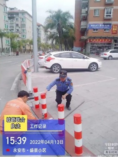 近日,市城管局接社区反映盛景小区大门两侧路口道路栏杆未围栏,车辆随意进出、人行道偶有占道停放,存在安全隐患,群众反映强烈。城管局高度重视,第一时间派城管执法人员前往现场了解情况。并安排5名市政工人安装人行道隔离栏,有效保障了群众出行安全顺畅,维护了市容秩序。