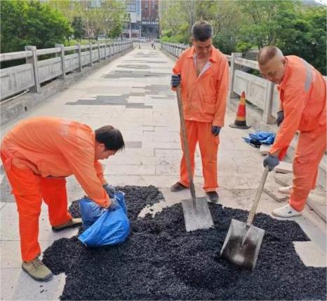近期,市政园林所持续做好市政设施日常修复工作,针对林化厂小桥路面破损开展修复,保障基础设施完好,群众出行便利。