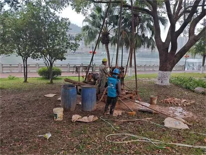 永安市市标路段城市排水防涝基础设施建设项目(江滨路段和新西路段)正在开展勘察钻孔