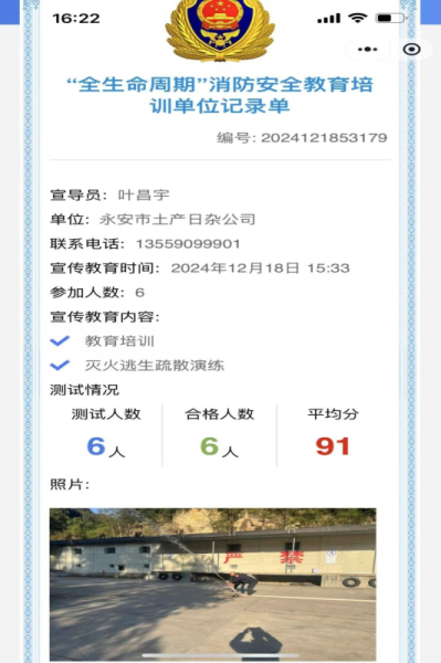 12月18日,永安市供销社在土产日杂公司西洋烟花爆竹仓库组织开展了消防演练,总计十余人参加。