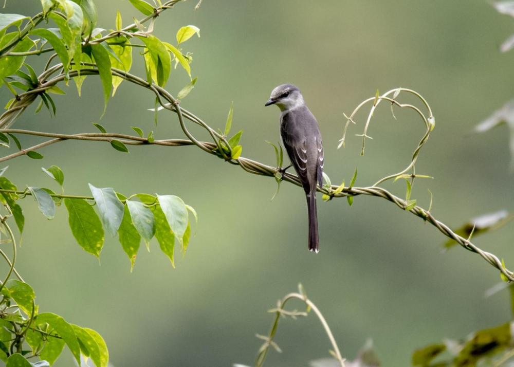 小灰山椒鸟属山椒鸟属山椒鸟科鸟类。羽毛黑、灰及白色相间,前额明显白色,腰及尾上覆羽浅皮黄色,颈背灰色较浓,虹膜褐色,嘴及脚黑色,整只鸟看上去像从水墨画里飞出的一样。小灰山椒鸟主要以叩头虫、甲虫、蝼蛄等昆虫和昆虫幼虫为食,被称为鸟类“捉虫能手”。主要分布于中国、柬埔寨、老挝、缅甸、泰国、越南。2023年6月,被国家林业和草原局列入《有重要生态、科学、社会价值的陆生野生动物名录》。