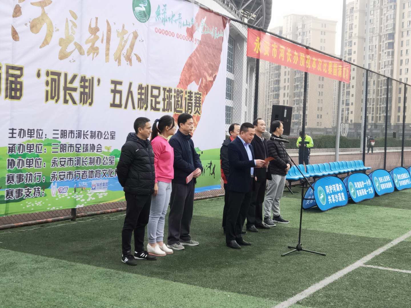 1月19日,由三明市河长办主办,三明市足协承办,永安市河长办、团市委协办的三明市首届“河长制杯”五人制足球邀请赛在永安市体育中心五人制足球场拉开战幕。习近平总书记指出,要大力发展足球产业,通过扎扎实实的努力,久久为功,逐步提高中国足球水平,让积极向上的足球文化成为中国人民实现中国梦的正能量。正如我们的河长制工作,通过持续不断的全面深入地推行河长制工作,坚持人与自然和谐共生、绿水青山就是金山银山的绿色发展理念,让所有的江河湖泊有人负责有人管控,最终实现保护水资源、防止水污染、改善水环境、修复水生态的目标。在全市河长办系统举办五人制足球邀请赛,旨在让两者相互结合,相互促进,共同发展。本次赛事为期2天,最后由大田代表队冒雨夺冠。