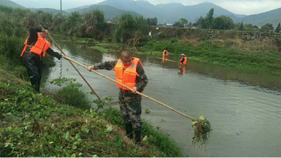 为清理河道内影响水环境的水生植物,河道管护员先后在玲珑溪河口处设置多道阻拦索,拦截处理河面漂浮物,防止继续漂浮污染下游河面河滩环境,同时管护员对河道内水生植物进行清理打捞,还周边居民一个水清景美的良好河道生态环境。