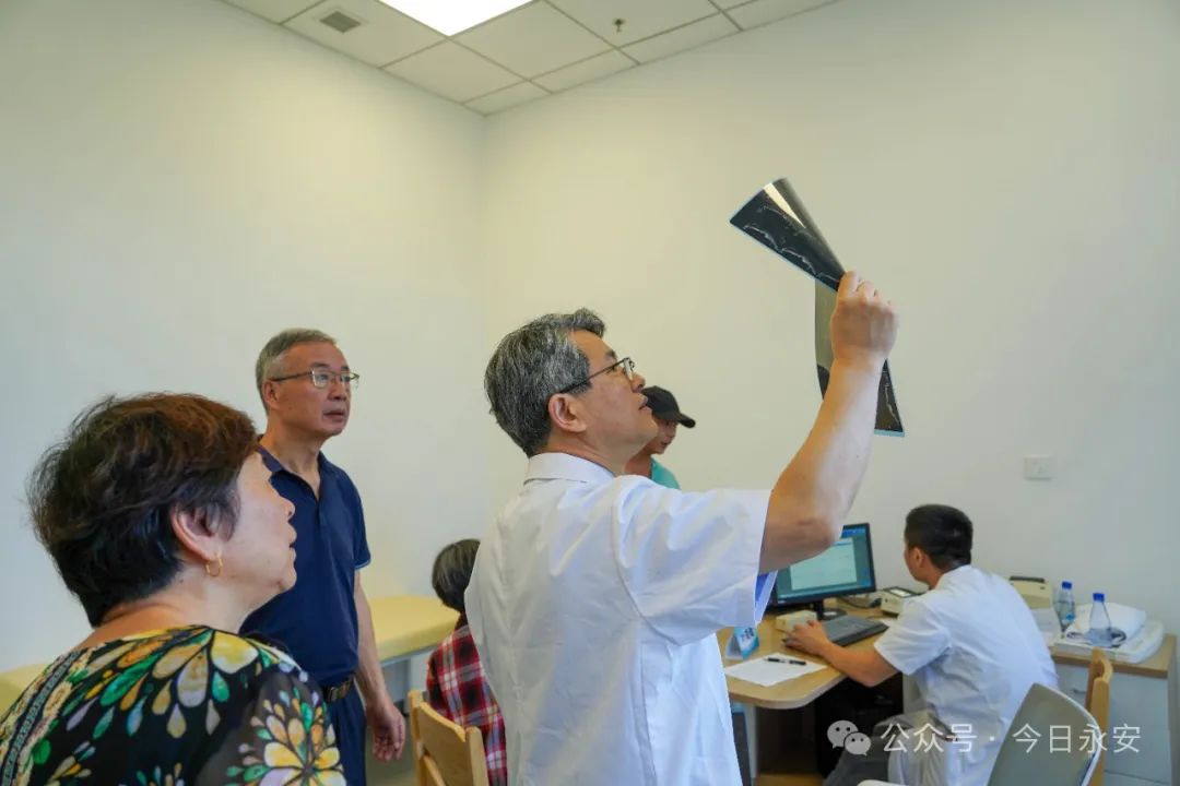 参加此次义诊活动的上海医疗专家共有12位,涵盖呼吸科、心内科、普外科、脊柱外科、内分泌科等多个领域。在义诊现场,专家们凭借精湛的专业技能和丰富的临床经验,为每一位前来咨询的市民提供了全面、细致的诊疗服务。专家们通过仔细查体、耐心问诊,针对不同患者的具体情况给予了专业化、个性化的治疗建议。据统计,本次义诊活动累计为130名市民提供了全面诊疗服务,让永安市民在家门口就能享受到来自上海的高水平医疗服务。