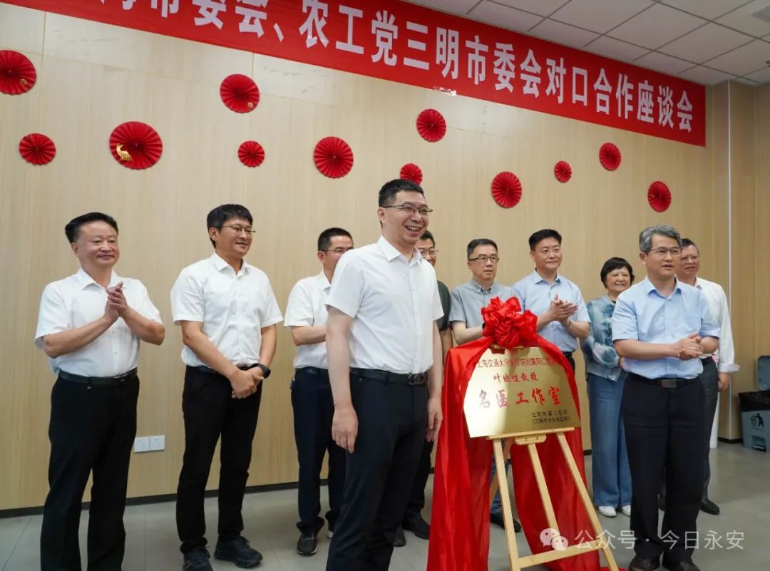 活动期间,农工党三明市委会与上海市委会签署了对口合作协议,三明市第二医院与上海交通大学医学院附属同仁医院举行了叶晓健教授名医工作室签约揭牌仪式。在随后召开的座谈会上,两地就农工党工作、永安总医院发展现状及未来规划等情况,进行了深入座谈交流。农工党上海市委会专职副主委姚捷,三明市政协副主席、农工党三明市委会主委陈欣,三明市委统战部常务副部长林远程,永安市委统战部部长张凤玺出席座谈会。