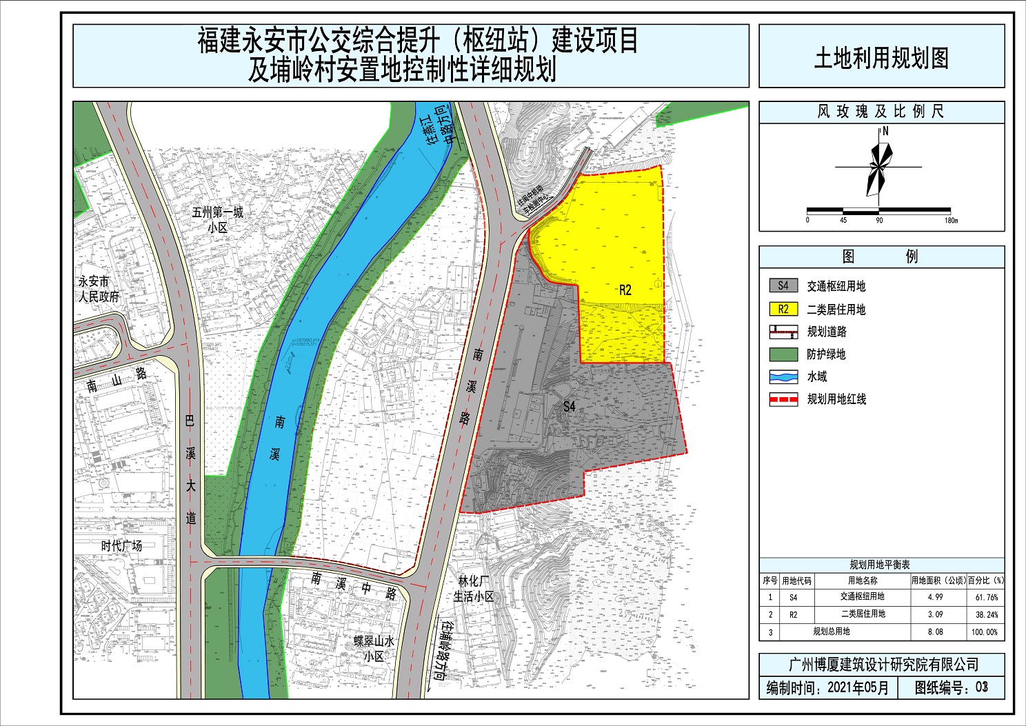 永安市自然资源局关于公交综合提升(枢纽站)建设项目及埔岭村安置地控制性详细规划(草案)的公示