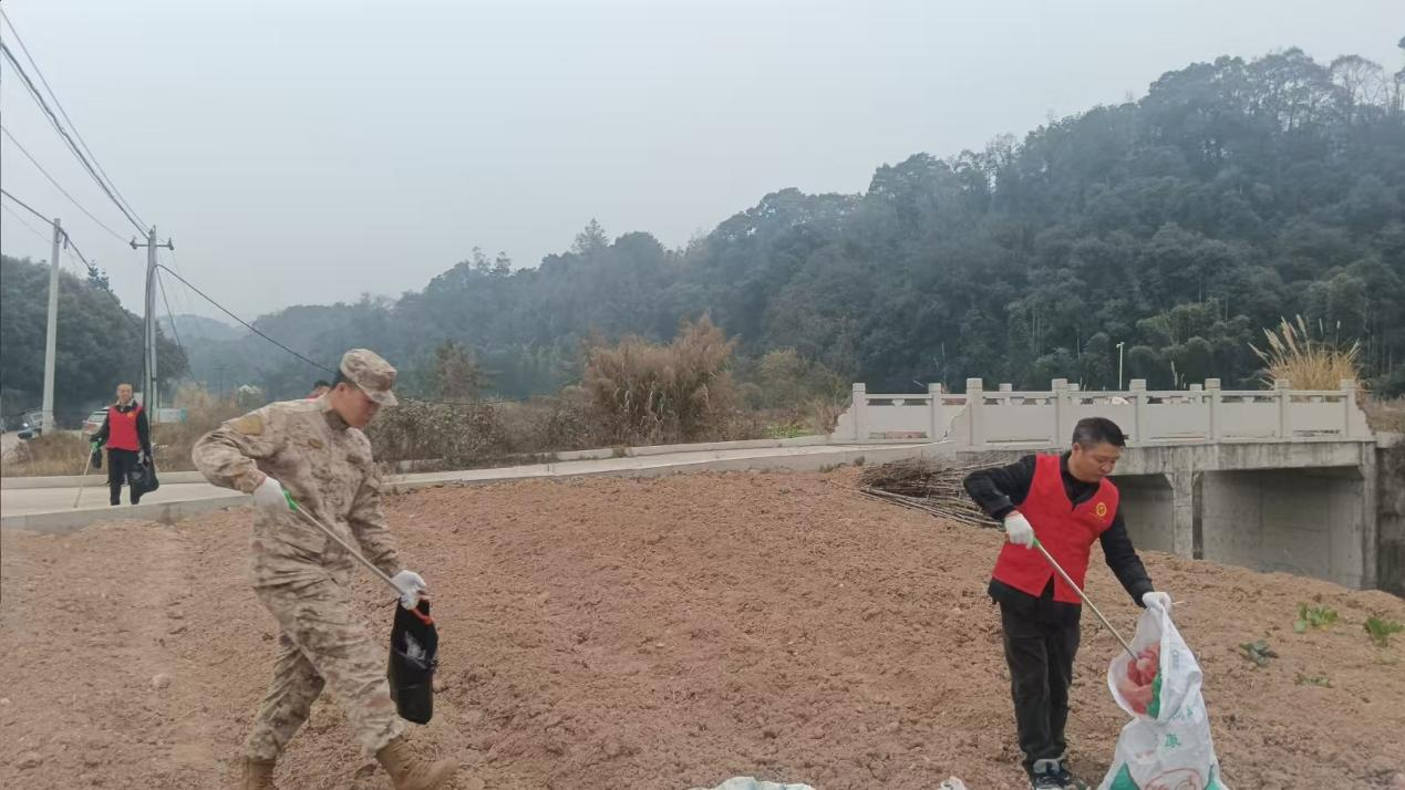 2025年1月3日,驻永部队官兵、燕南街道领导干部、志愿者及永浆村、茅坪村、埔岭村村两委成员约50人,有的手拿竹竿,有的手拿铁锹,有的手拿钳子、垃圾袋等,在燕江支流永浆河畔,清理河岸垃圾和河道漂浮物,共累计清理建筑垃圾、生活垃圾、白色垃圾及农田内废弃杂物等垃圾5车。