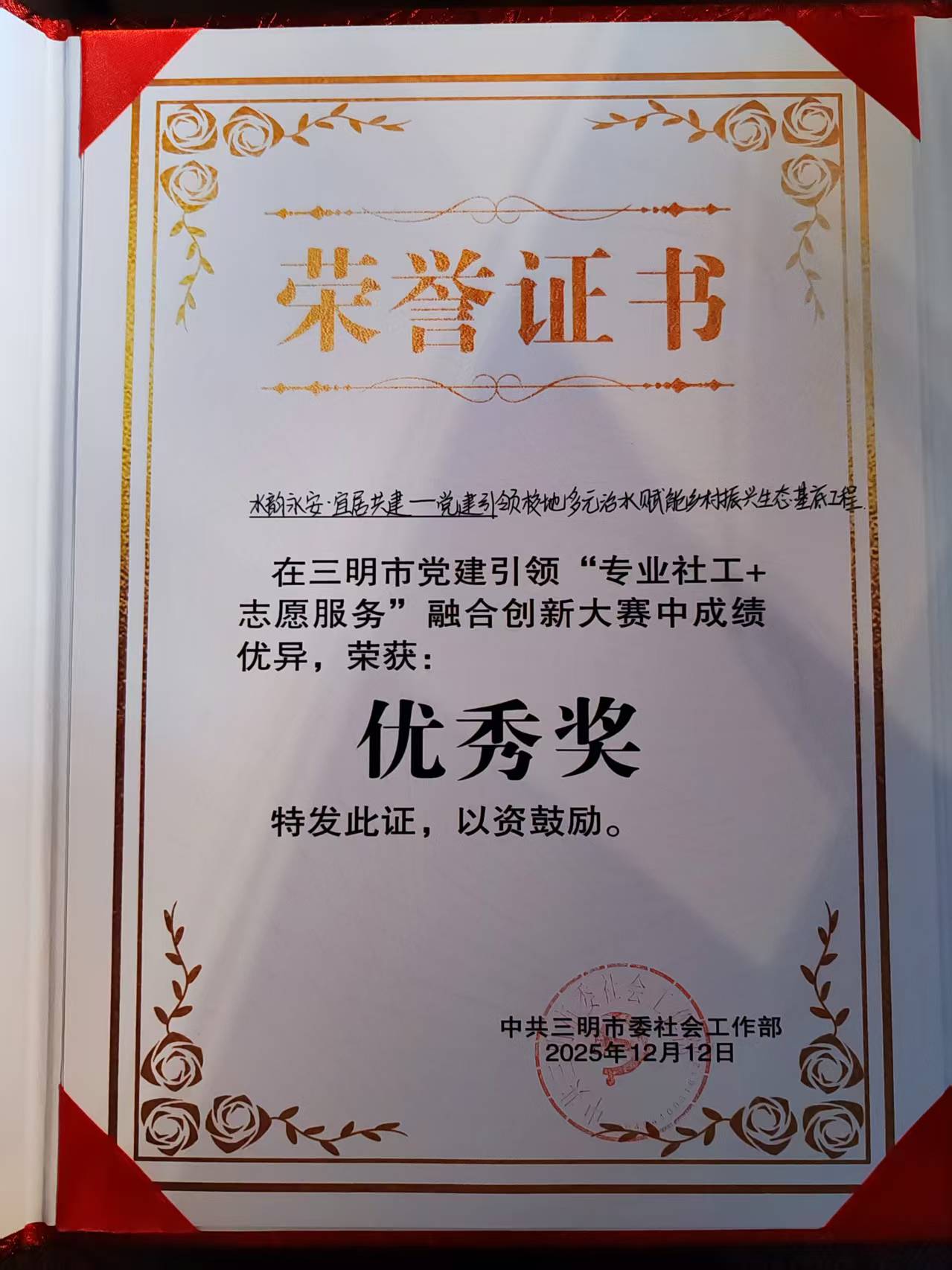 永安市“政协委员河长+青年志愿者”巡河基地获奖