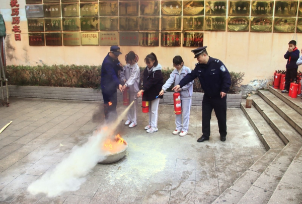 培训中,大队宣导员首先组织师生听讲最近一些典型火灾案例、家庭防火消防安全知识学习,随后,结合近期校园典型火灾案例,通过互动问答的方式,向师生讲述了校园消防安全的重要性,用通俗易懂的语言向学生讲解校园消防安全、消除身边的火灾隐患、正确拨打119报警电话及逃生自救方法等消防安全知识,叮嘱同学们不玩火,日常生活中注意用火、用电安全,避免火灾事故的发生。现场的警务人员也通过分享网络诈骗的案例对同学们敲响了警钟。最后,为了巩固培训效果,大队宣传员就如何正确使用灭火器扑灭初期火灾及在进行灭火操作注意事项进行详细的讲解说明和现场演示。同学们纷纷踊跃上场,亲自动手尝试扑救初期火灾。在大队宣传员手把手的指导下,同学们顺利地完成了现场“灭火”行动。